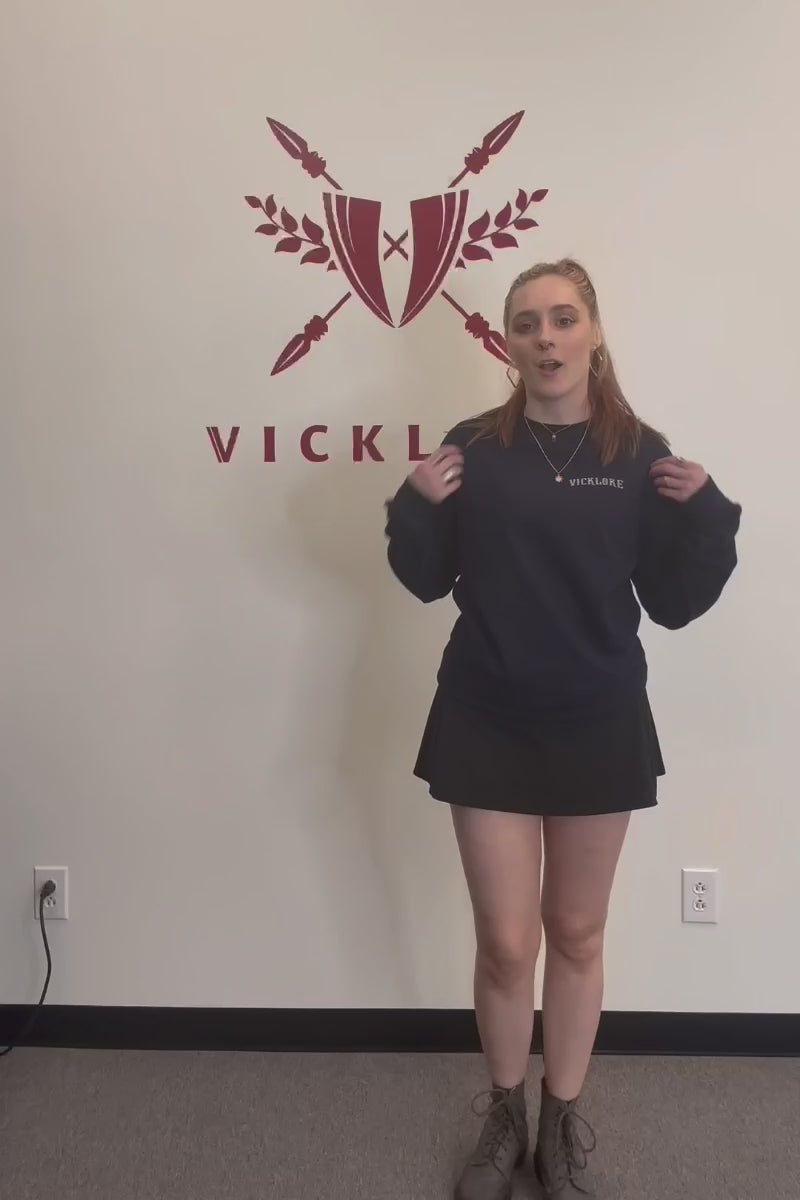 - Vicklore logo in tattoo font printed on left chest